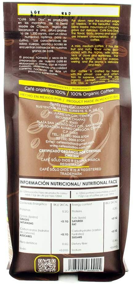 Solo Dios Coffee. Whole beam, artisan flavor. 35 ounce bag